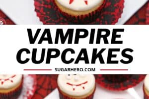 - Cupcakes: You’ll need 24 baked and cooled cupcakes. Make cupcakes from scratch or use your favorite mix! I used white cupcakes for these little bloodsuckers, but you can make any flavor you like.
