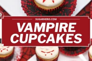 Today I’m sharing my decorating tricks to make these bloody cute Vampire Cupcakes. You’ll start with prepared cupcakes of your choice, easy homemade frosting, fondant, and a few candy decorations. Just follow the simple step-by-step directions, and you’ll be ready to party vampire-style in no time!